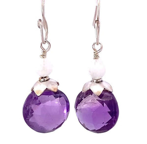 Buried Treasure Sterling Faceted Amethyst and Moonstone Earrings. 1 3/4" long