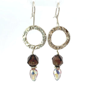 'Chocolate Love' Smoky Quartz and Swarovski crystal earrings. 2 1/8" long