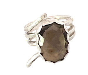 'Chocolate Love' Smoky Quartz Sterling Silver Sacred Spiral Ring. size 6