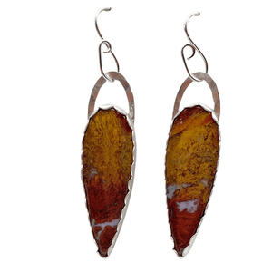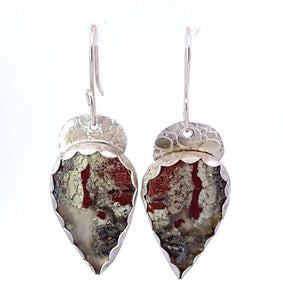 ‘South seas Treasures’ Indonesian Red Moss Agate earrings 2 " long