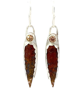 ‘South Seas Treasures’ Indonesian Red Moss Agate earrings 2 1/2" long
