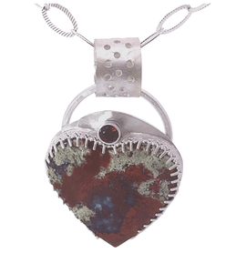 'South Seas Treasure' Indonesian Moss Agate Heart pendant 1 7/8" tall.