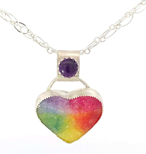 • 'Memories of Childhood' Solar Quartz and amethyst Heart Pendant. 1 1/2" tall.