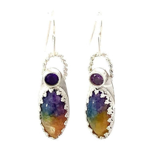 • 'Memories of Childhood' Rainbow Solar Quartz and amethyst Sterling earrings 1 7/8" long