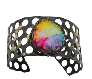• 'Memories of Childhood' Rainbow Solar Quartz Copper & Sterling cuff bracelet 1" wide