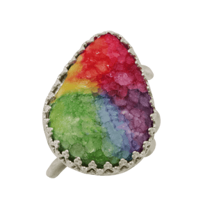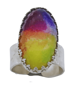 • 'Memories of Childhood' Rainbow Solar Quartz Sterling silver Ring. size 9