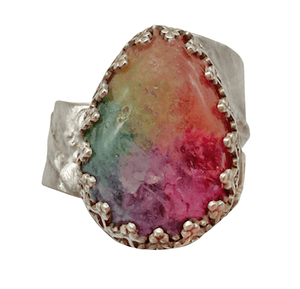 • 'Memories of Childhood' Rainbow Solar Quartz Sterling silver Ring. size 7