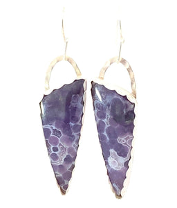 'South Seas Treasures' Grape Agate Fine Silver Earrings 2 1/2" tall