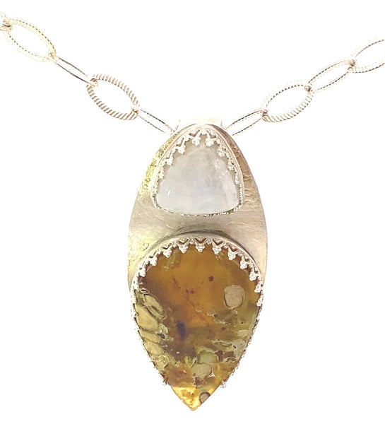 Amber is actually NOT a gemstone but in reality is fossilized resin. This variety is found in Indonesia and has moss like inclusions. I adore the shade of brown and beige.