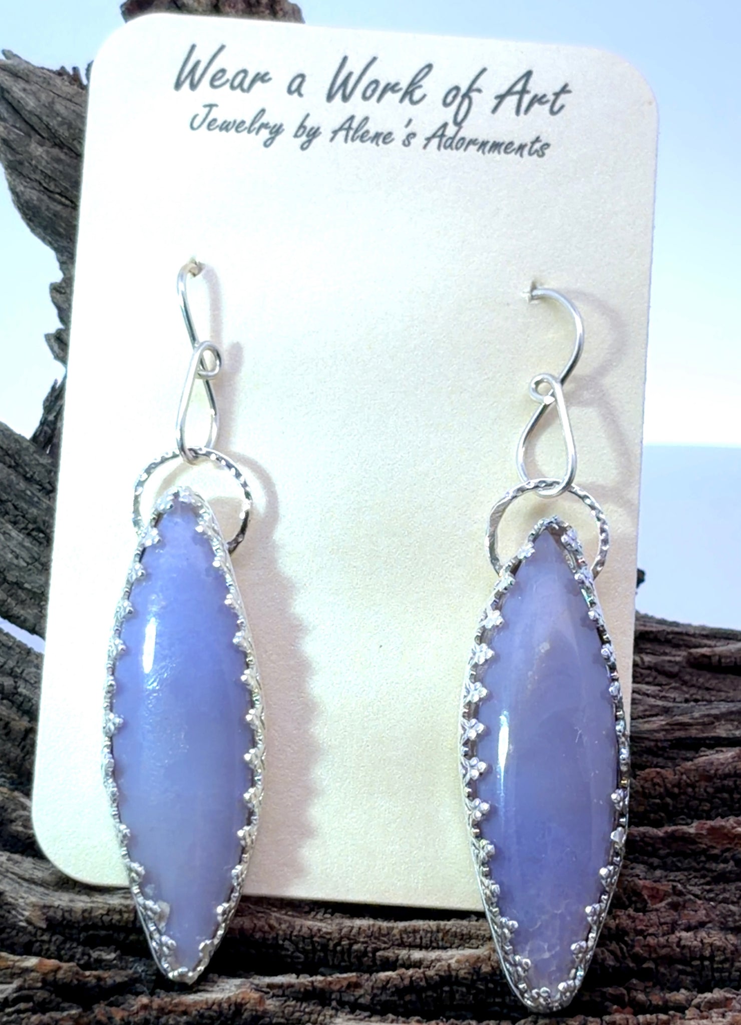 'South Seas Treasures' Grape Agate Fine Silver Earrings 2 1/4" long